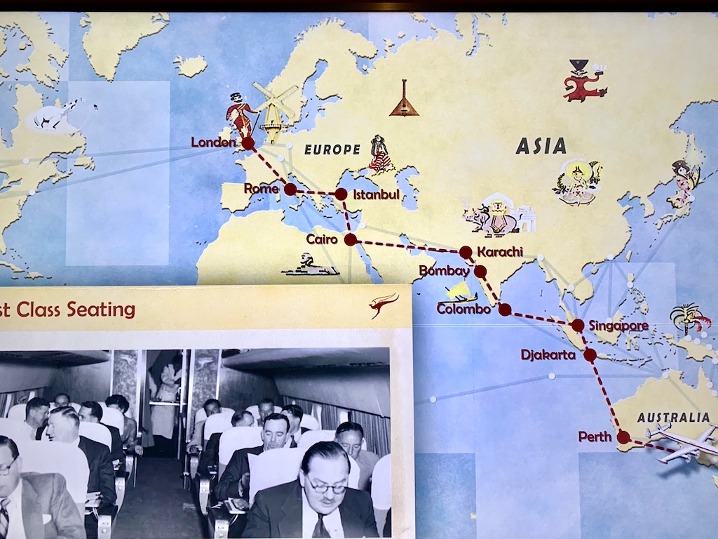 Je me dis parfois que j’aurais aimé voyager autour du monde dans les années 20 ou 50, à une époque où le véritable voyage était davantage synonyme de patience, où les journées n’étaient pas si folles ou vécues comme un film en accéléré. Il fallait pour se rendre de Londres en Australie (toujours gouvernée par la Reine d’Angleterre;-) en Super Constellation, pas moins de 8 escales. C’était une véritable invitation à la découverte, à l’exotisme, à l’imprévu.