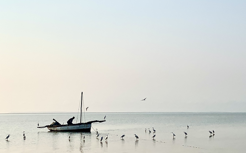 Balade inoubliable sur des kilomètres de plages désertes. Remontée des filets de pêche au petit matin, ou défilé des femmes venant faire leur marché sur la plage pour revendre leurs poissons en centre-ville. Visite de lodges désertés de tout touriste depuis de si longs mois. Une économie touristique dévastée et à reconstruire entièrement, en en profitant pour la réinventer au passage, si possible…