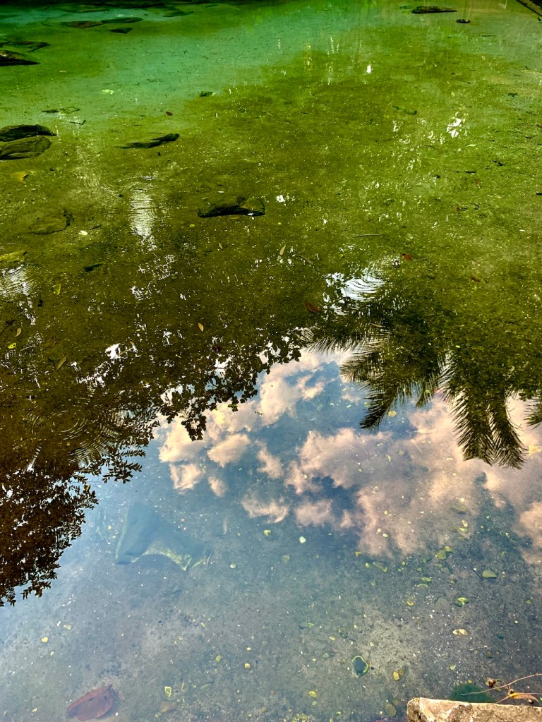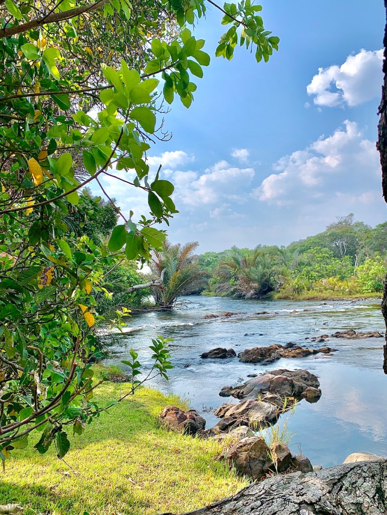 Cette table et ses huit chaises constitueront mon bureau de travail jusqu’à la nuit. C’est sans doute la plus belle salle de réunion dans laquelle j’ai eu l’occasion d’écrire, ouverte aux quatre vents, le bruit de la ville étant remplacé par celui de l’eau qui se jette sur les pierres affleurantes, le reste du décor n’étant que des murs de végétation harmonieux, d’une diversité féerique.