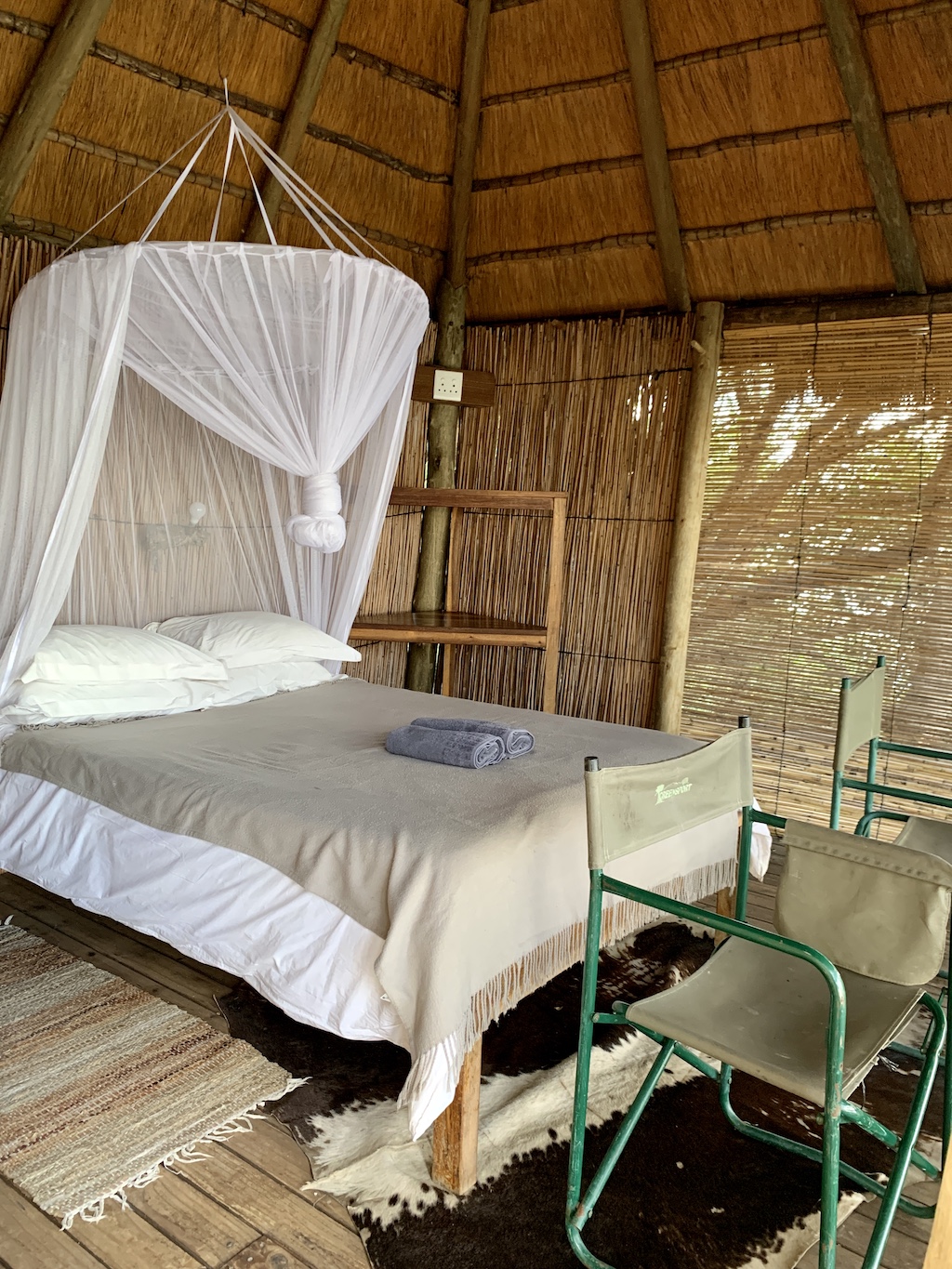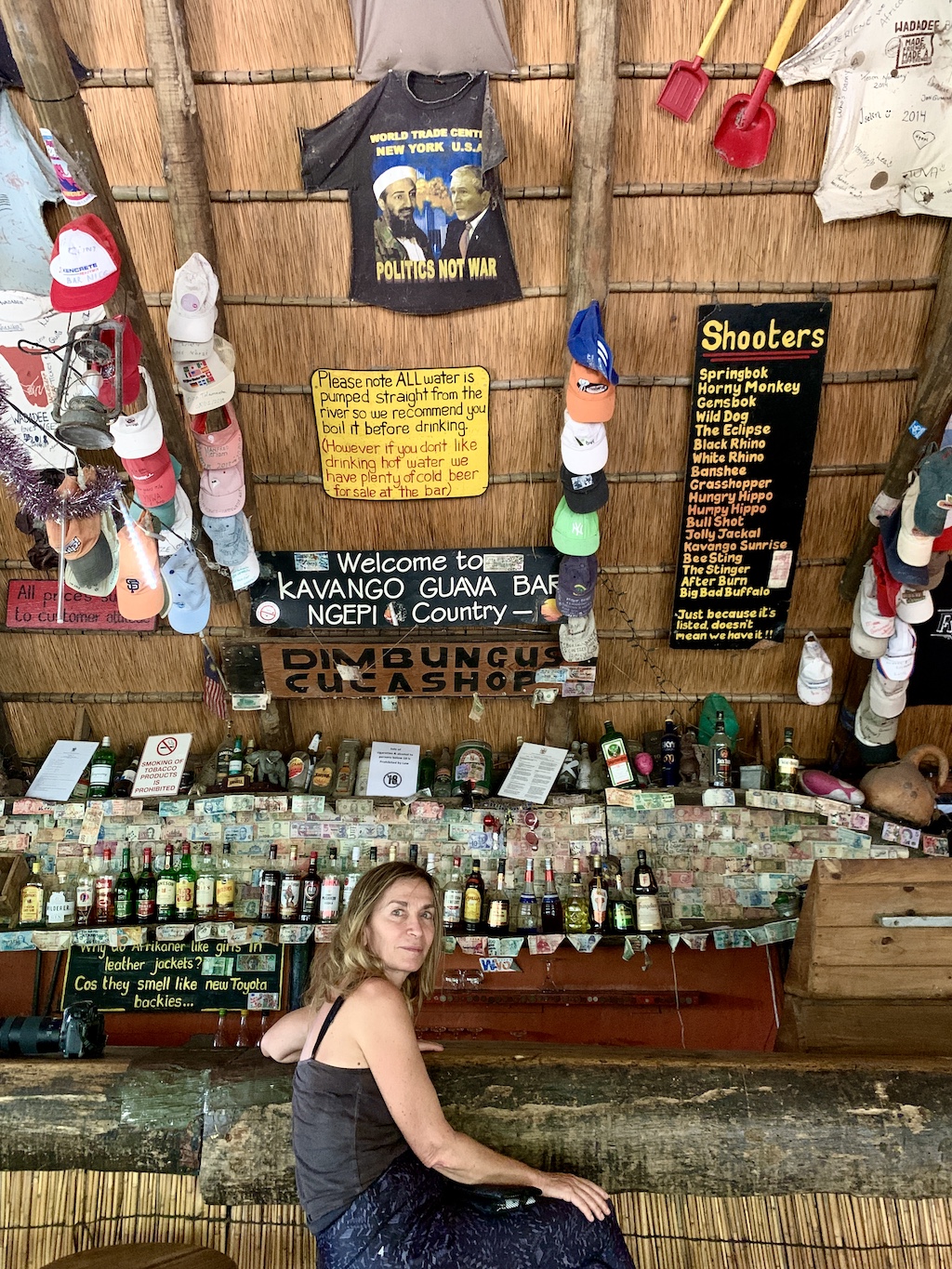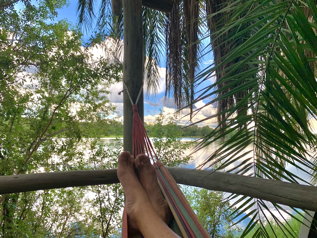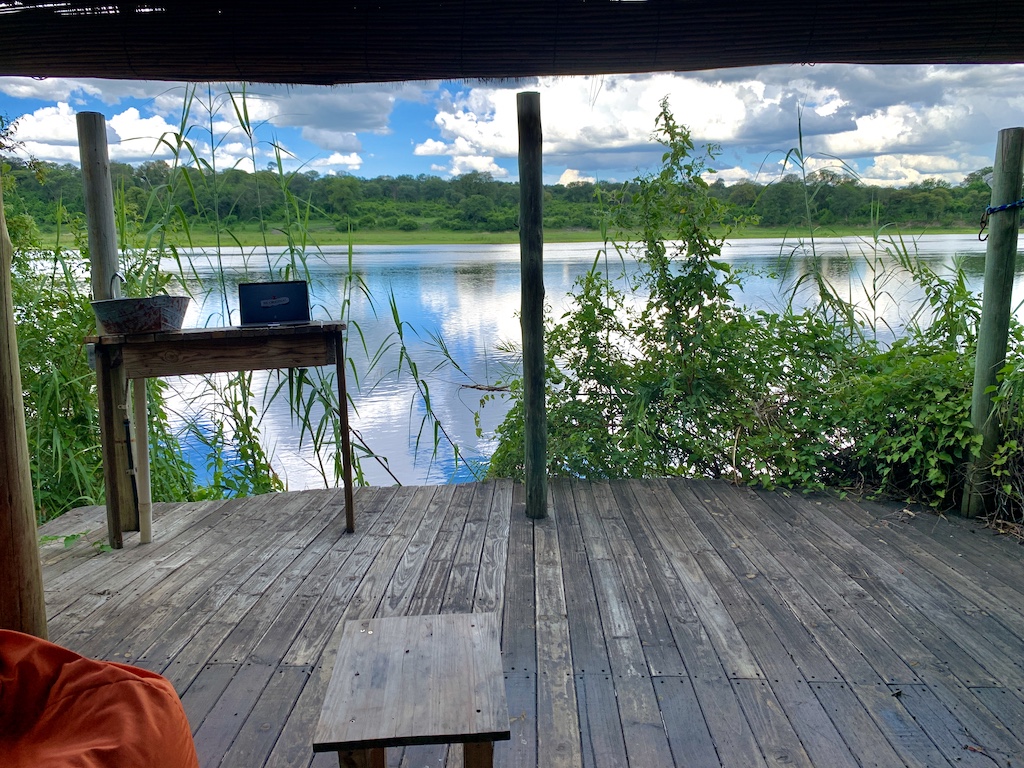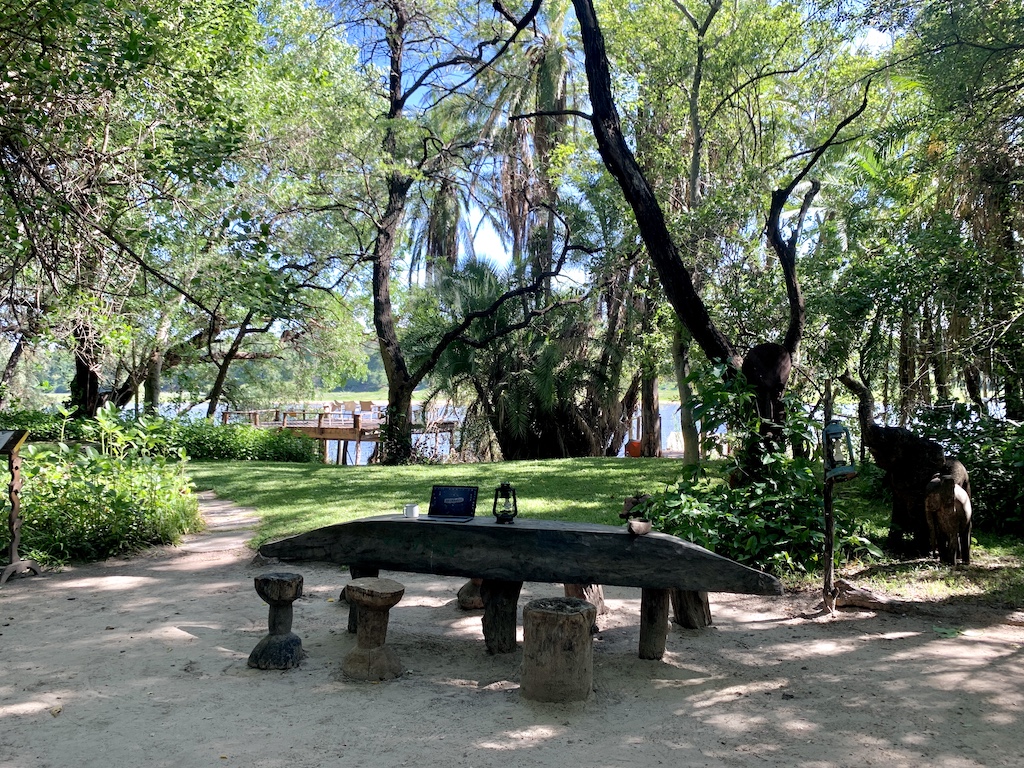 Si vous prévoyez de voyager en Namibie, allez dormir au moins deux nuits au Ngepi Camp, situé près de la frontière Nord de la Namibie avec le Botswana. C’est un endroit délicieux, plein d’humour et de décontraction. Certainement, l’un des meilleurs lieux où j’ai bivouaqué. Les bungalows n’ont que deux murs, ouvrant la vue sur la rivière et la nature. C’est féérique, sans se prendre au sérieux… Voici le lieu: ici