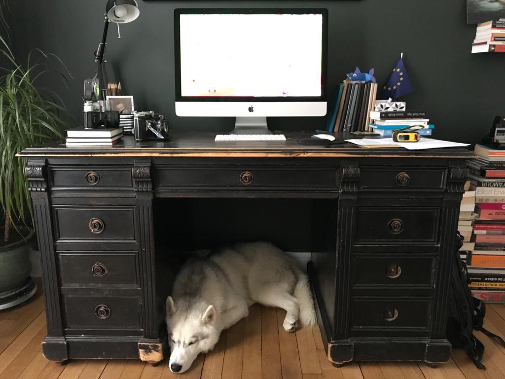 Quelle ne fut pas ma surprise quand je rendis un jour visite à mon père qui vivait en Creuse, invalidé par une longue maladie. Je vivais à l’époque à Madrid et savais qu’il avait pris un chien comme animal de compagnie, après des décennies de cohabitation magnifique avec des chats. C’est alors que je fis la connaissance de cette chienne, un Griffon Khortal, doté d’une bonne bouille, gentille, attendrissante par moment, mais je ne pouvais m’empêcher de penser qu’elle était particulièrement collante, le suivant partout dès qu’il changeait de pièce ou le sollicitant s’il ne lui avait pas prêté attention depuis plus d’une demi-heure.