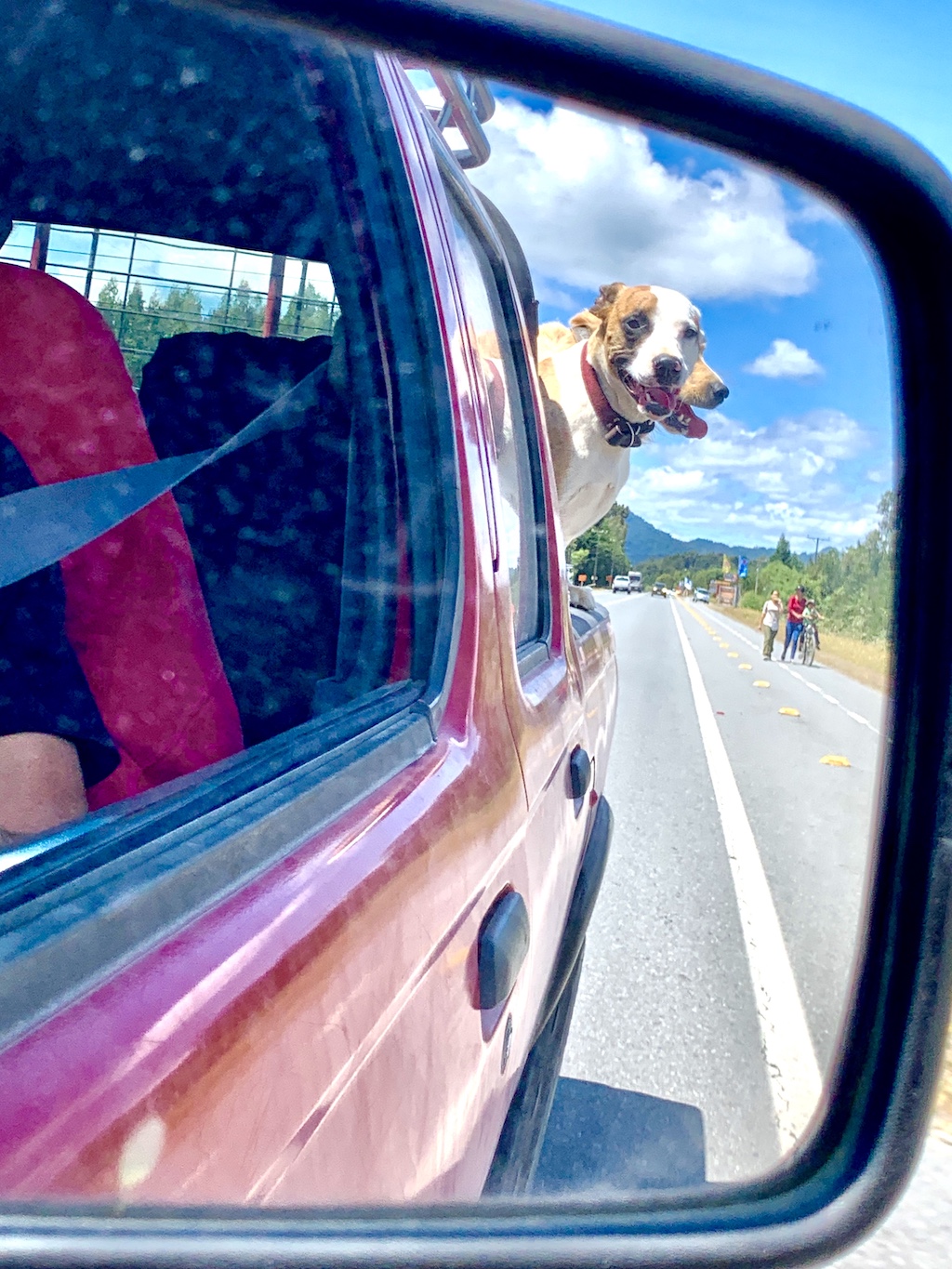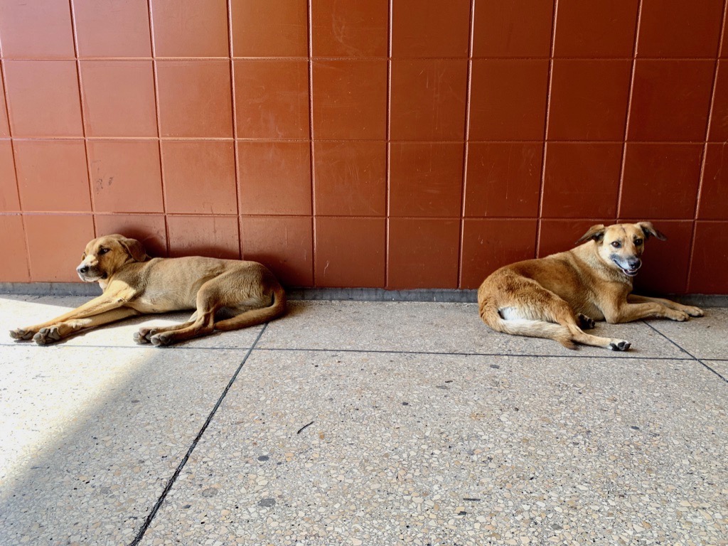J’ai croisé tellement de chiens errants, agressifs et visiblement affamés, lorsque je voyageais en moto en Amérique Latine. Je les repérais de loin. Il se jetaient sur ma moto, en aboyant et en me coursant en essayant de mordre. Je me suis fait prendre à deux reprises, une fois au mollet et une fois à la cheville. Lorsque je voyageais avec mon amie péruvienne Beatriz, elle fut aussi victime de leurs crocs acérés et nous dûmes nous arrêter à l’hôpital d’Ushuaia pour qu’elle reçoive une injection antirabique.