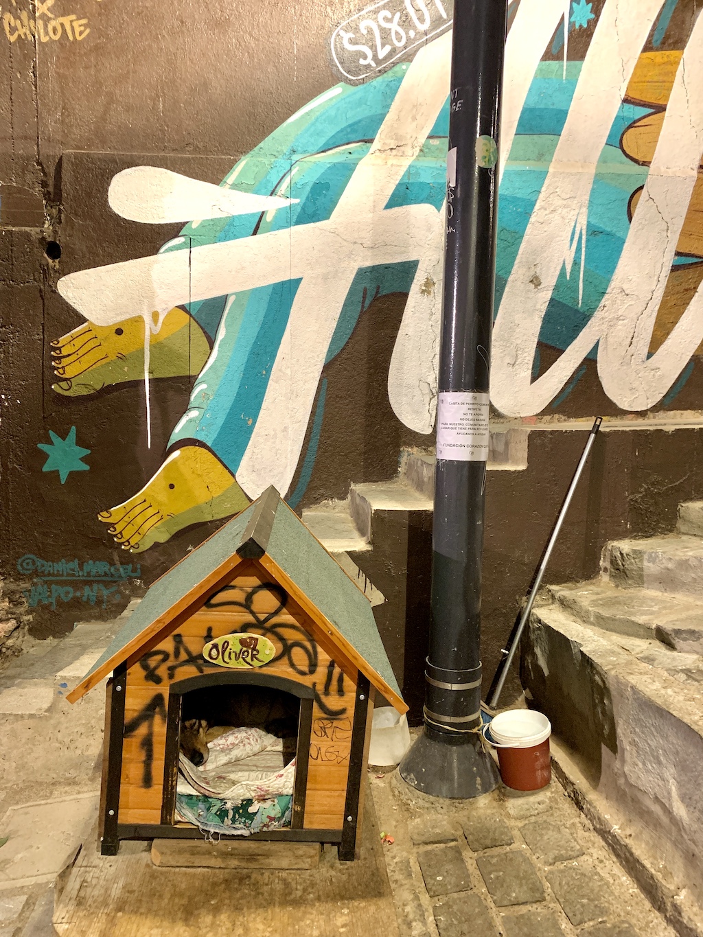 La Bolivie compte 4 chiens pour 10 habitants, sans doute le record mondial, alors que l’OMS, pour des raisons de santé publique, recommande de ne pas dépasser la proportion de 1 chien pour 10 habitants. Cela n’est d’ailleurs pas sans poser de problèmes puisqu’on dénombrerait à La Paz, la Capitale, plus de 400.000 chiens errants, créant selon la municipalité de véritables problèmes sanitaires. Les chiens se déplacent en meute dans la ville, fouillent les poubelles pour se nourrir, se montrent souvent agressifs, engendrant plusieurs centaines de cas de rage canine chaque année. Des associations de quartier tentent de pallier le manque de moyens des principales villes et s’organisent pour venir en aide aux chiens souvent abandonnés par leur maître sans scrupule. 80% des chiens errants auraient en fait un maître irresponsable et négligent, laissés à leur propre sort dans les rues de La Paz, ne recevant pas ou peu à manger, et évidemment ni vaccinés, ni stérilisés, ni soignés. Une vraie vie de chien au sens le plus tristement parlant du terme. Des refuges de rue, des niches improvisées sont construites avec les moyens du bord par les habitants pour tenter de pallier ce phénomène inquiétant, faisant de la plupart de ces pauvres bêtes des « chiens communautaires ».
