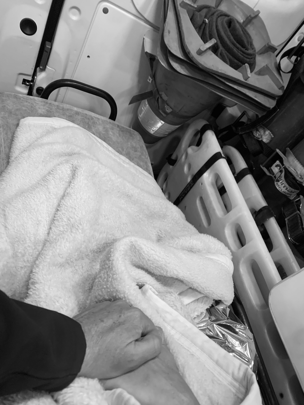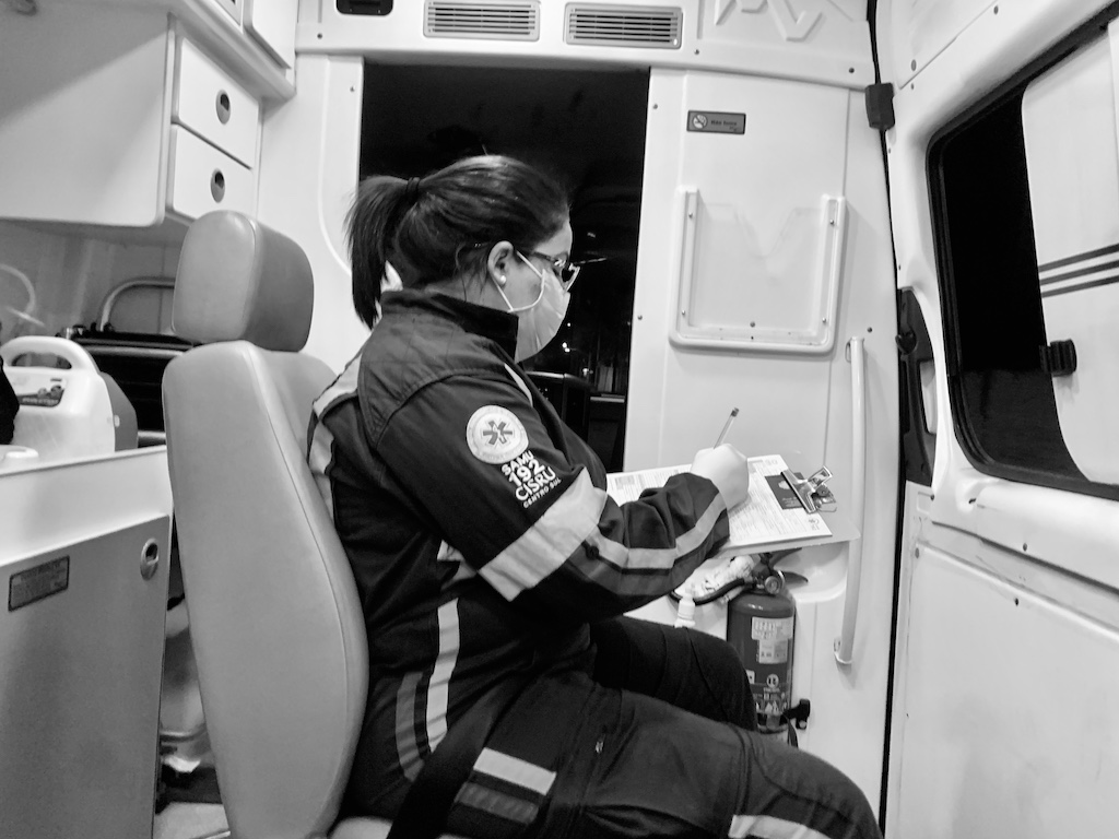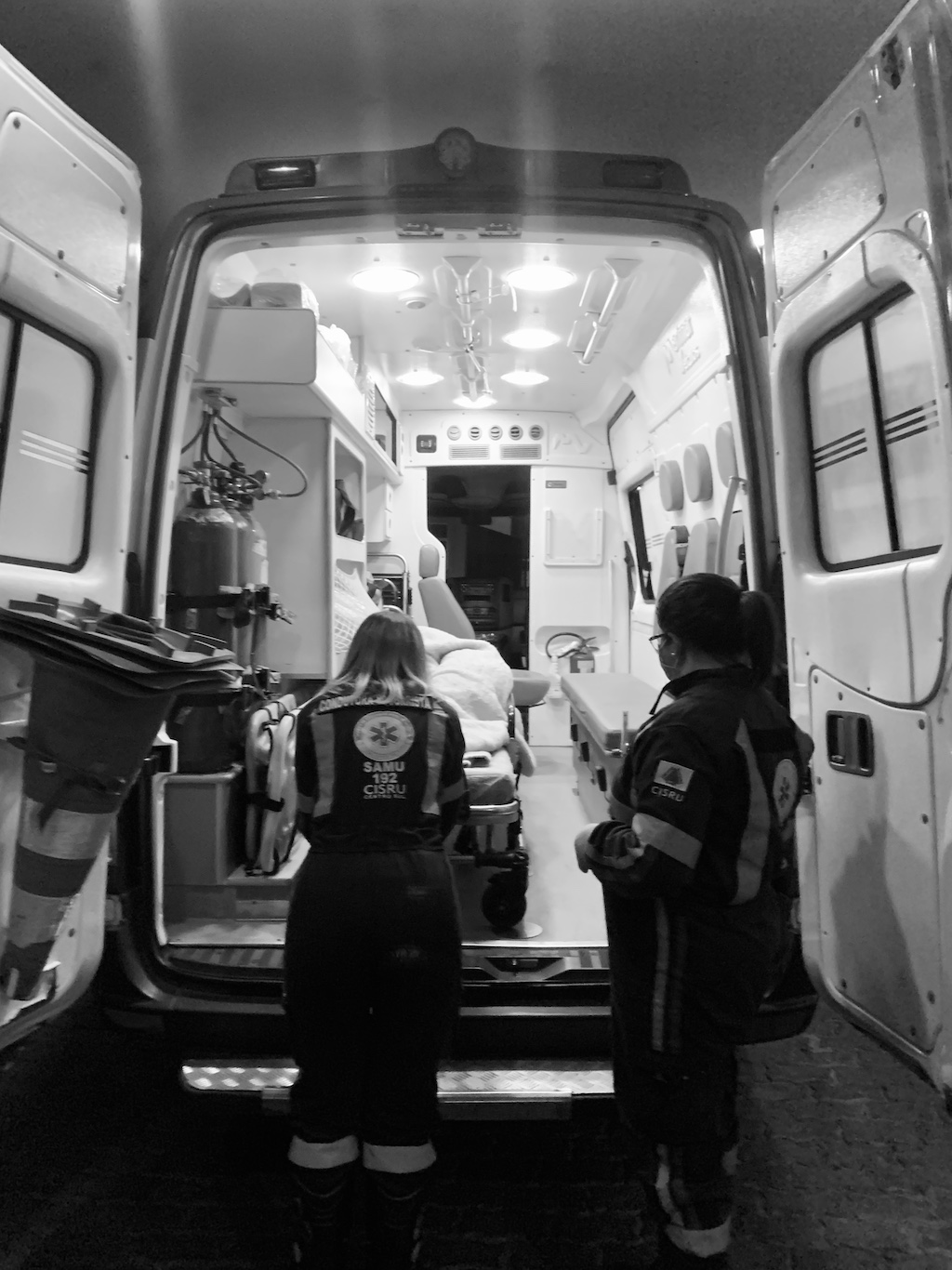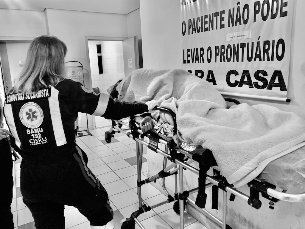 Mon amie Catherine, qui m’accompagne pour un mois au Brésil a fait un malaise inexplicable en fin de soirée et a perdu connaissance. Le SAMU, en la personne de deux jeunes femmes, est arrivé en quelques minutes à l’hôtel. Les premiers examens indiquèrent que tout était bon (pression sanguine, rythme cardiaque…), sauf sa température qui flirtait avec un petit 32 degrés. L’hypothermie évidente et l’état d’inconscience dans laquelle elle était plongé, nous offrirent un voyage aller-simple a l’hôpital le plus proche.