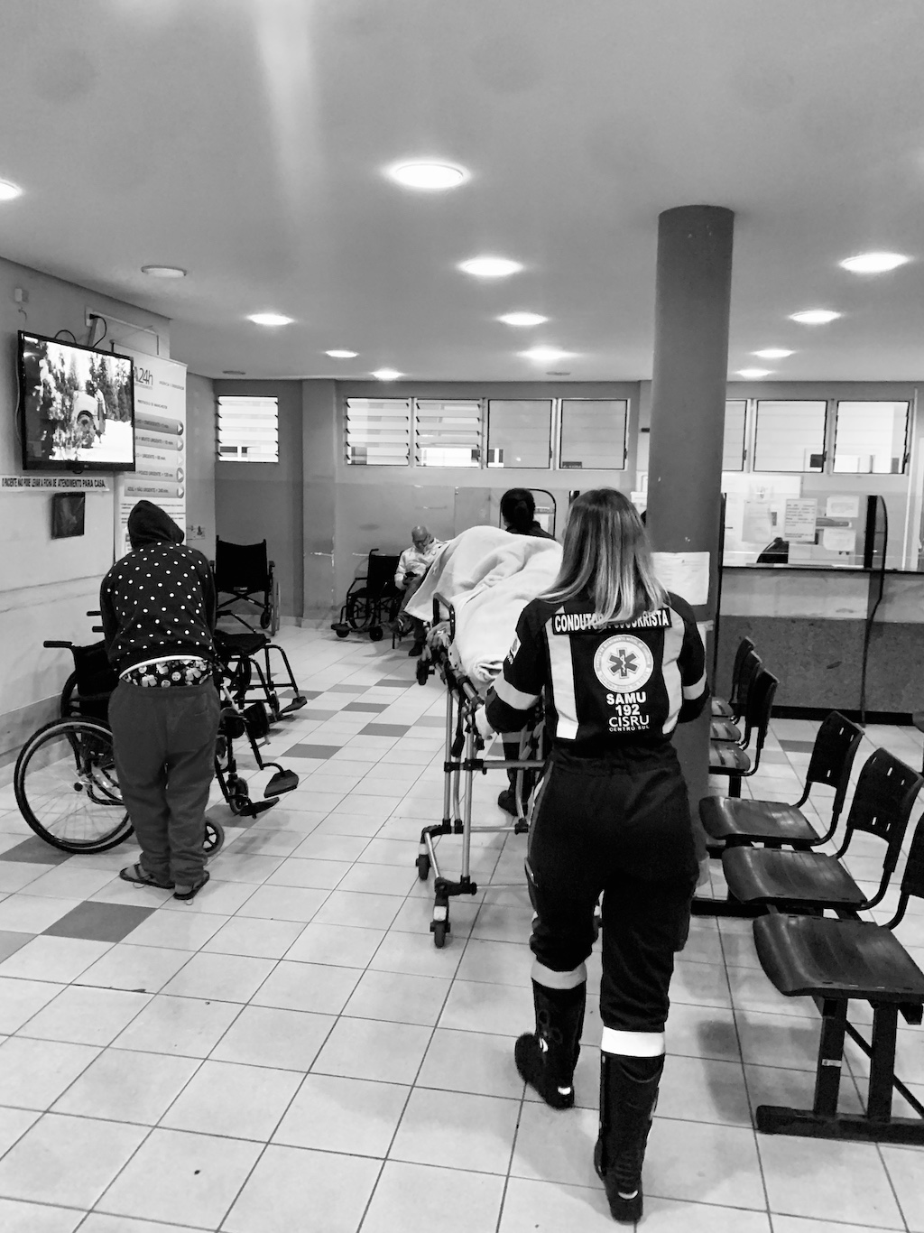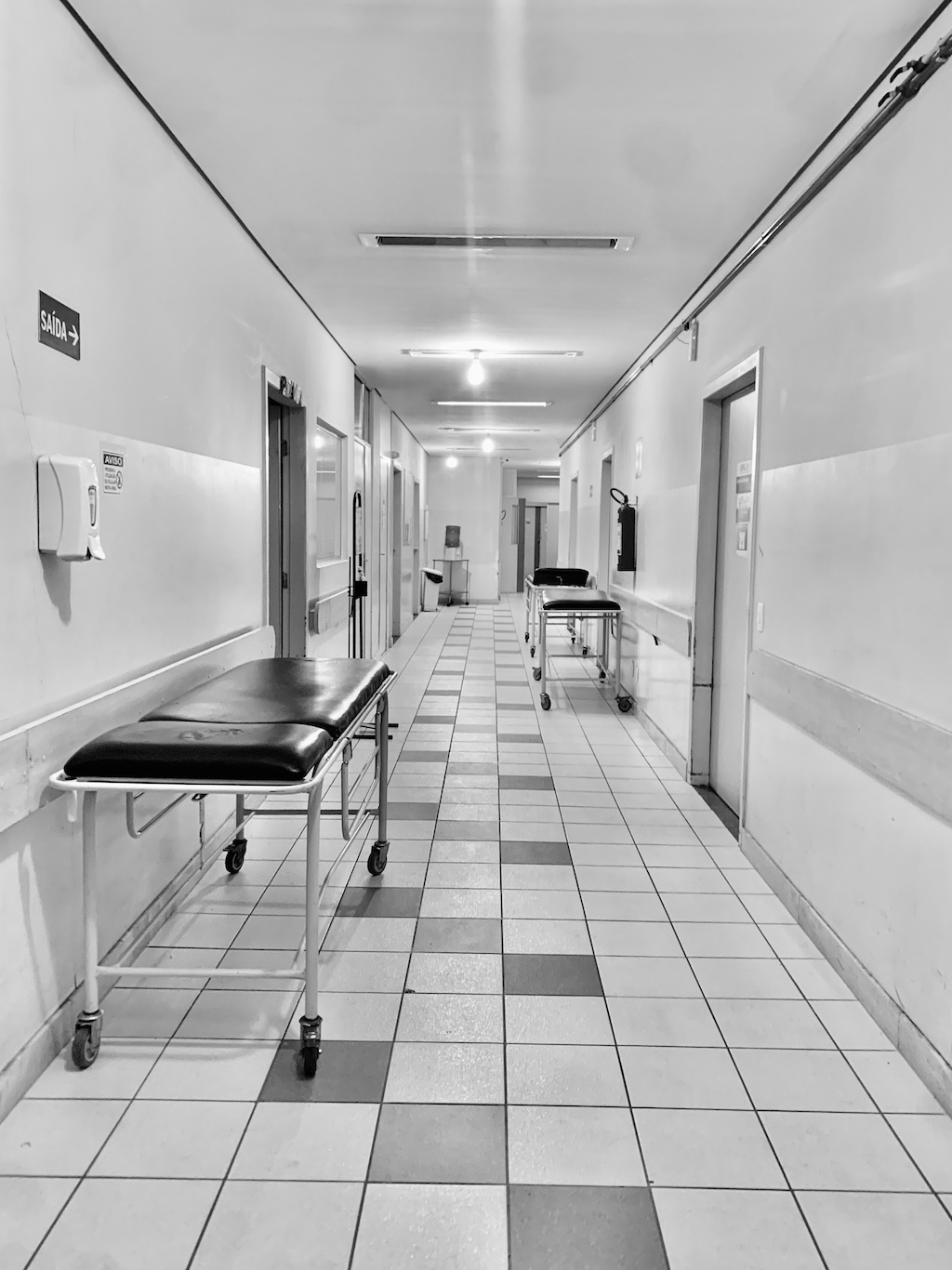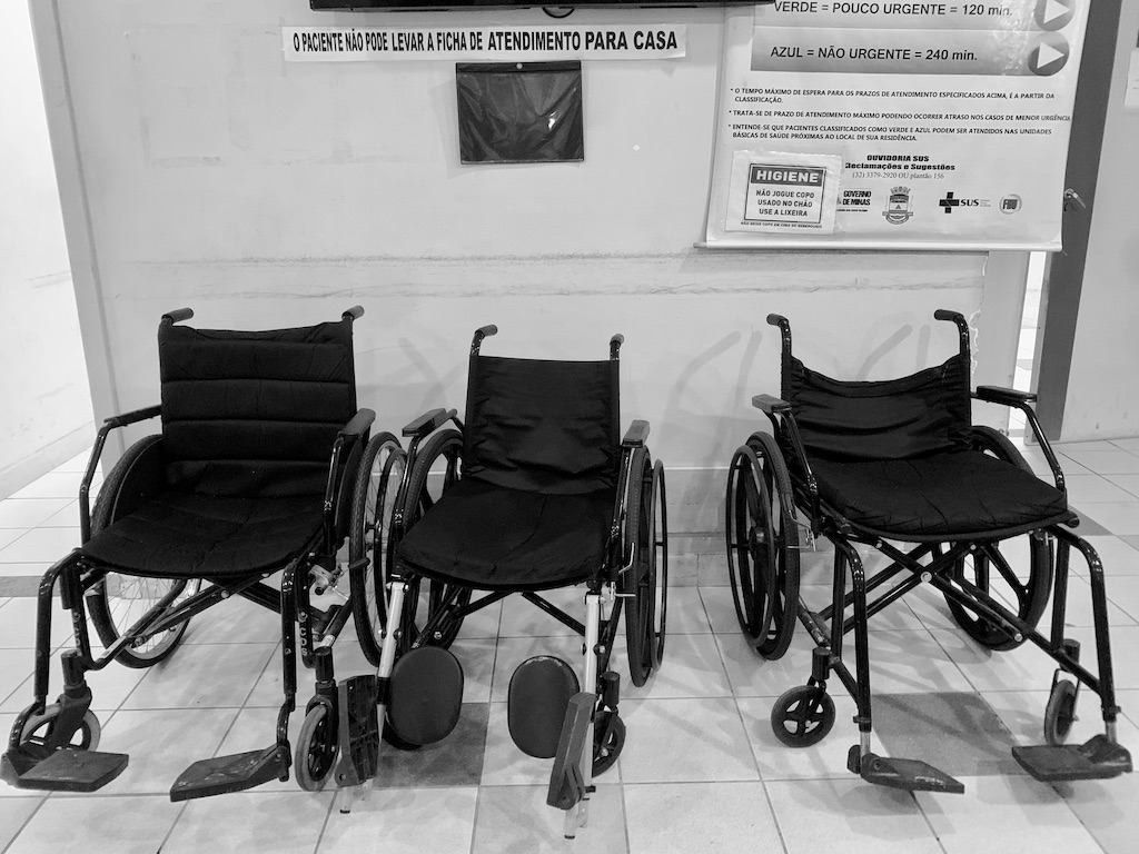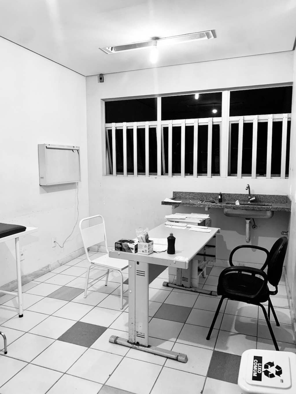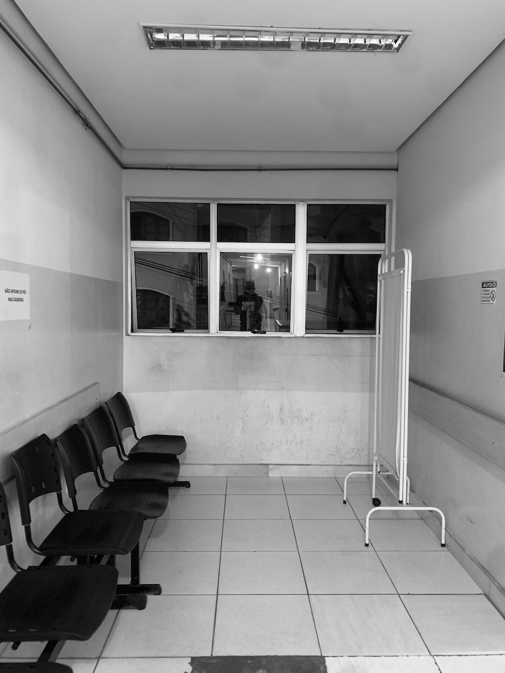 C’est donc avec cette même curiosité, dissimulée derrière une évidente inquiétude, que j’ai pu découvrir cette nuit, une tranche vie d’un petit hôpital de province, sans véritablement le vouloir. Les photos qui illustrent cette mini-chronique ont été prises entre minuit et trois heures du matin au service des urgences de l’hôpital UPA de Saõ Jaõ del Rei, petite bourgade au passé colonial, située dans l’Etat du Minas Gerais (Brésil).