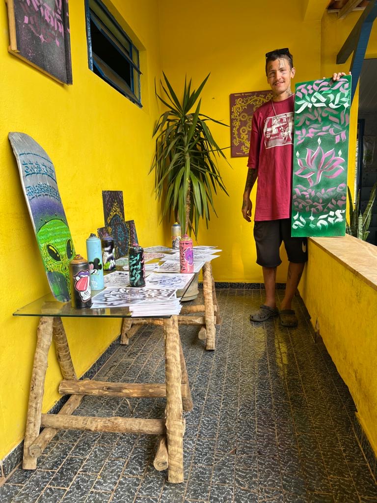 Images du Minas Gerais, sur la route en direction de l’Instituto Terra. Le jeune artiste-grapheur se surnomme Inka, en hommage à ses racines, car son grand-père était comme ma moto: de Lima -Pérou.