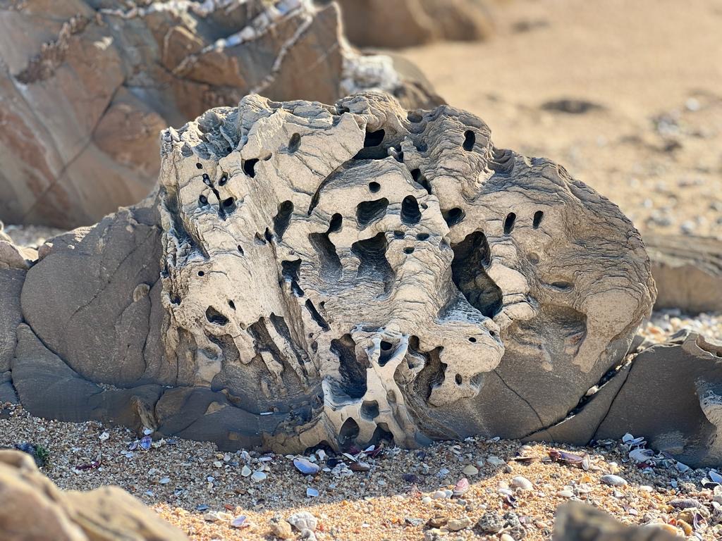 Je prends ce cailloux ramassé sur une plage de l’Uruguay, né à une époque où le continent Sud-Américain ne faisait qu’un avec l’Afrique. A-t-il le souvenir de ses frères gisant sur les côtes Namibiennes, avant que le courroux de la Terre et le règne inexorable de l’Océan Atlantique n’établisse son empire et ne les sépare à jamais ?