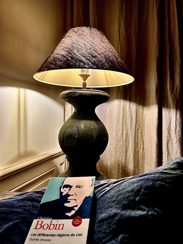 C’est ainsi que j’allai délivrer l’ami Christian Bobin de sa bibliothèque, et me saisir de ses œuvres choisies, intitulées « Les différentes régions du ciel » aux éditions Gallimard. C’est un gros pavé jeté dans les eaux calmes de ma nuit, ce genre de cailloux qu’on lance un jour au milieu d’une mare et qui continue de produire des cercles de beauté et de sens, durant de nombreuses des années, sans qu’on s’en aperçoive. J’ai tout lu de mon ami nocturne et il sait tout de moi, depuis qu’il est parti explorer les régions du ciel, comme je le fais des chemins du monde. Mais il n’a jamais été aussi présent qu’en cette nuit paisible.