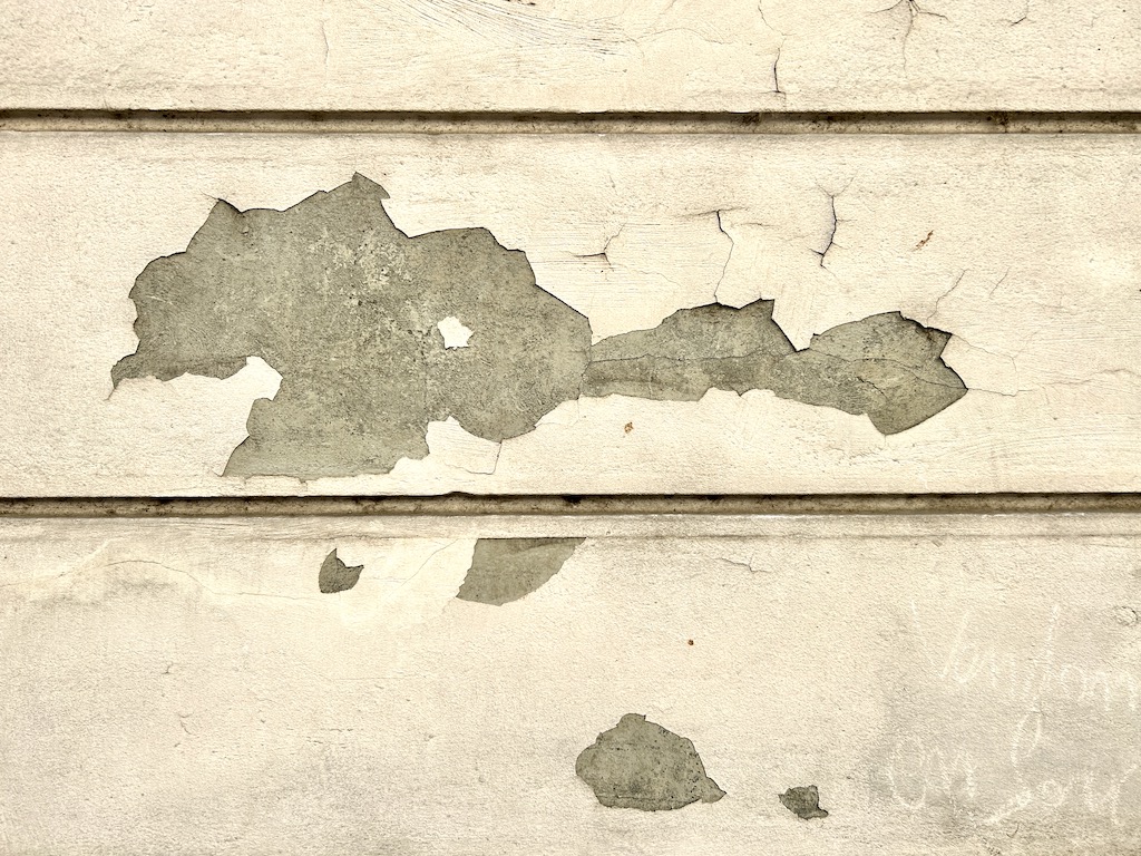 La peinture s’écaille, sa teinte se fane et le support s’effrite