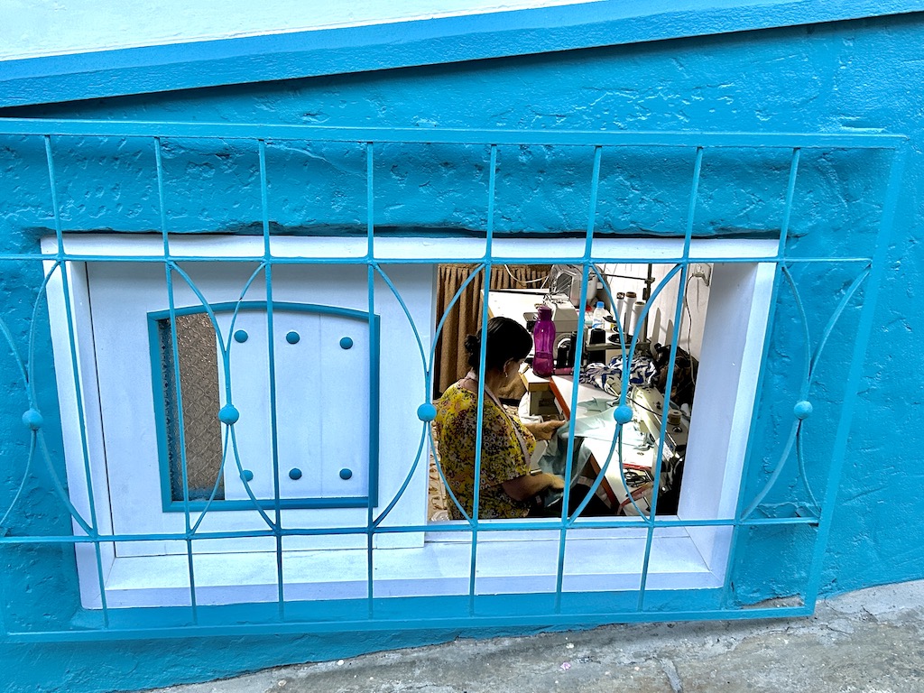 En guise de conclusion pour les amoureux de portes et de fenêtres, huissiers inavoués, troubadours frustrés ou passe-murailles reconvertis, je vous invite à picorer gratuitement les images que j’ai rassemblées pour vous (tout le mérite artistique et les crédits photos revenant à mon amie Catherine Tourasse). Ces clichés hauts en couleur, valent bien des tableaux contemporains, souvent acquis à des prix indécents par la plupart des grands musées d’art moderne du monde. Et je me permettrais de suggérer à Saint-Gobain qui possède désormais l’entreprise Lapeyre, d’installer un magasin de démonstration ou un dépôt-vente dans cette ville sainte et bigarrée, avec un slogan publicitaire adaptée à cette zone de chalandise particulière, qui pourrait être :