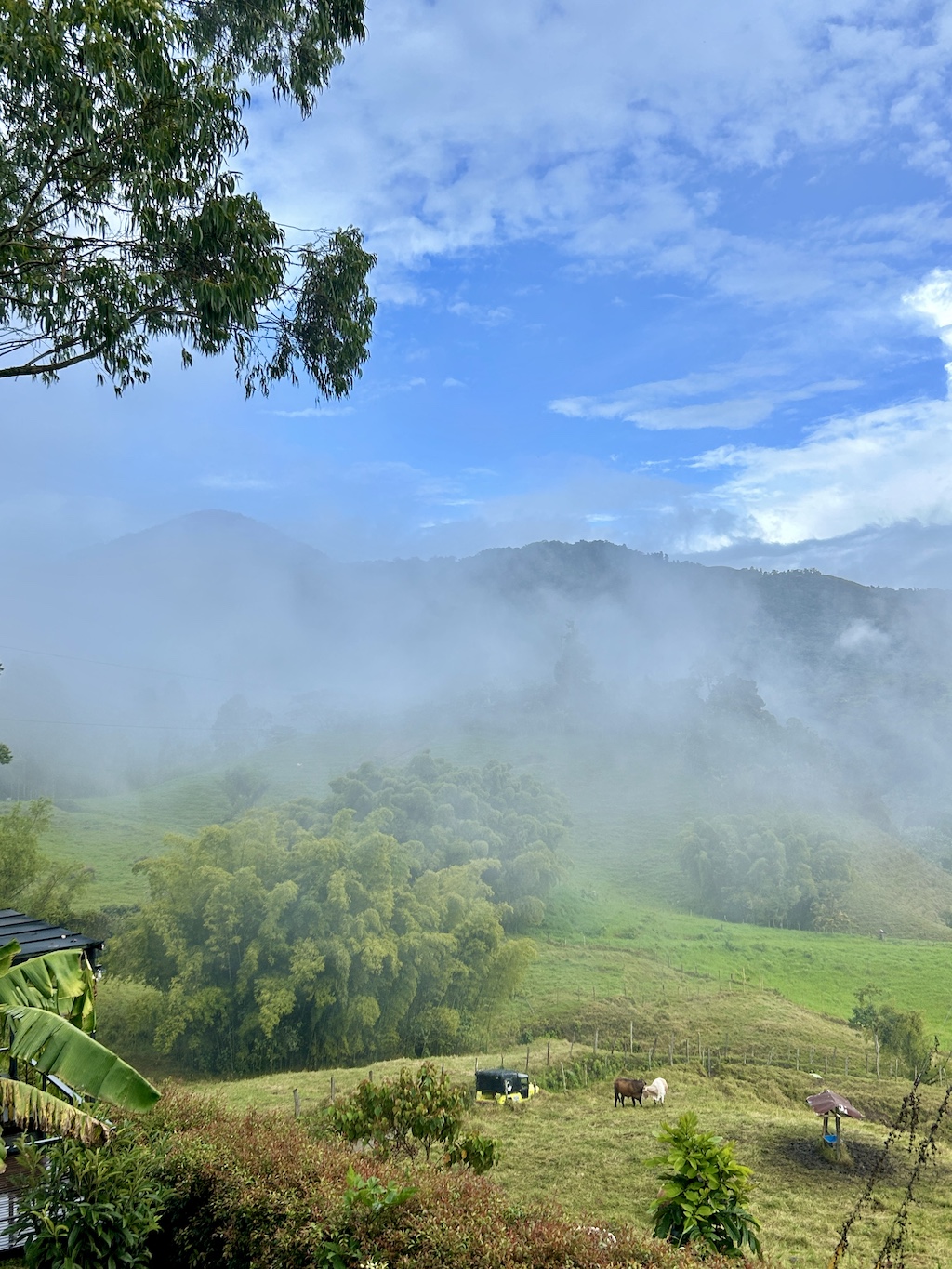 La boucle que nous avons effectuée durant ces quinze jours de vadrouille en parfaite liberté, nous menant de Bogotá, à Silvania, Armenia, Salento, Pereira, Jardín, Jericó, Santa Fe de Antioquía, Medellín, Guaduas et retour à Bogotá, nous a conduit par des chemins improbables, des détours sur des pistes défoncées et des chemins désertés, au cœur de la région du café, dans des paysages renversants de beauté, auxquels les quelques photos de cette chronique rendent un hommage édulcoré. Je vous laisse juge…