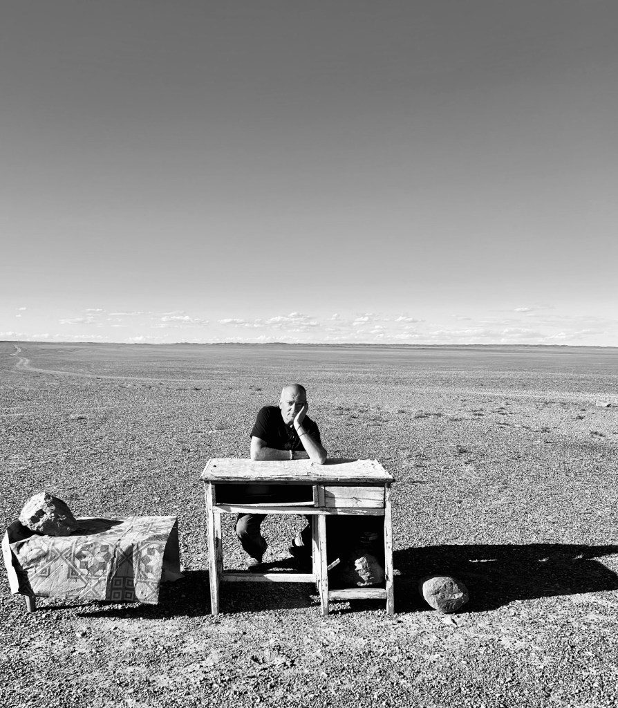 Alors, dans ce monde où il faut visiblement s’imposer avec des valeurs alpha – soignons le mâle par le mal – je décrète que tout le monde devra s’arrêter devant mon bureau, qui barre la piste principale vers le nord, pour tous ceux qui viennent du désert de Gobi (le sujet d’une très prochaine chronique), afin que je perçoive mon dû, un droit de “pas sage !” que j’ai toujours revendiqué. Et aboule la monnaie… Pour continuer de financer ce voyage et cette vie qui me tire les larmes aux yeux… de bonheur, mais qui a une sacré tendance à me vider les poches…