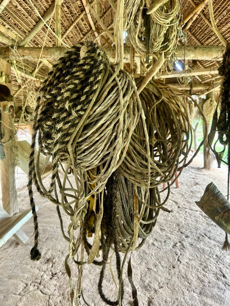 De loin, on entend le cri rauque des singes hurleurs, fermement amarrés dans la hauteur des cimes, avec leur queue interminable qu’ils enroulent aux branches les plus solides.